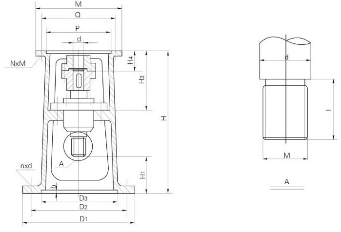 雙支點(diǎn)機(jī)架,不宜于選用無支點(diǎn)、單支點(diǎn)機(jī)架時(shí),應(yīng)選用雙支點(diǎn)機(jī)架。但選用的雙支點(diǎn)機(jī)架下支點(diǎn)軸承結(jié)構(gòu)采用帶緊定套的錐孔調(diào)心滾子軸承便利于安裝維修,且攪拌軸與減速機(jī)之間的聯(lián)接 選用HL型彈性柱銷聯(lián)軸器。