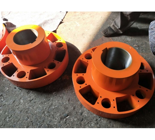 彈性塊聯(lián)軸器是以橡膠為彈性元件材料,無(wú)扭轉(zhuǎn)傳動(dòng)間隙,易于現(xiàn)場(chǎng)調(diào)節(jié)剛度的彈性聯(lián)軸器,具有補(bǔ)償兩軸相對(duì)偏移以及減振、緩沖性能,節(jié)能,無(wú)噪聲,不用潤(rùn)滑, 換彈性件(易損件)時(shí)主機(jī)半聯(lián)軸器用作軸線移動(dòng)(對(duì)于重型機(jī)械設(shè)備此特點(diǎn)尤為重要),安裝維護(hù)簡(jiǎn)便,使用壽命較長(zhǎng),根據(jù)需要通過(guò)改變橡膠配方(主要改變硬度)可以調(diào)整聯(lián)軸器的扭轉(zhuǎn)剛度。適用于聯(lián)接兩同軸線大中功率、振動(dòng)沖擊較大的軸系傳動(dòng),例如冶金機(jī)械、礦山機(jī)械等。原來(lái)的標(biāo)準(zhǔn)(ZBJ19029-90)存在外徑尺寸大、質(zhì)量大等缺點(diǎn),改進(jìn)后的新標(biāo)準(zhǔn)(JB/T9148-99代替ZBJ19029-90)新結(jié)構(gòu)不僅保留了減振、緩沖性能好的特點(diǎn),而且縮小了外徑尺寸,減輕了質(zhì)量和轉(zhuǎn)動(dòng)慣量,提高了許用轉(zhuǎn)速,經(jīng)過(guò)幾年的工業(yè)應(yīng)用,優(yōu)點(diǎn)明顯,已成原結(jié)構(gòu)的 新?lián)Q代產(chǎn)品。新標(biāo)準(zhǔn)許用轉(zhuǎn)速平均提高28%, 大外徑平均縮小36%,轉(zhuǎn)動(dòng)慣量平均減小70%,質(zhì)量平均減輕57%。